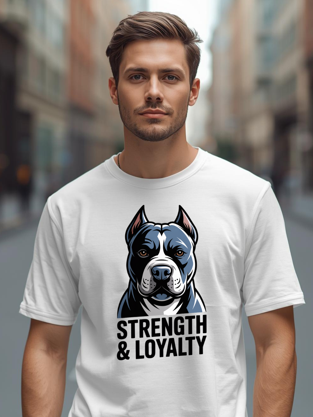 Ta koszulka to idealny wybór dla każdego, kto kocha energię, mądrość i oddanie Amstaffa. Klasyczny, czarno-biały nadruk w stylu graficznym doskonale oddaje temperament tej wyjątkowej rasy – pełnej pasji, ruchu i radości życia.