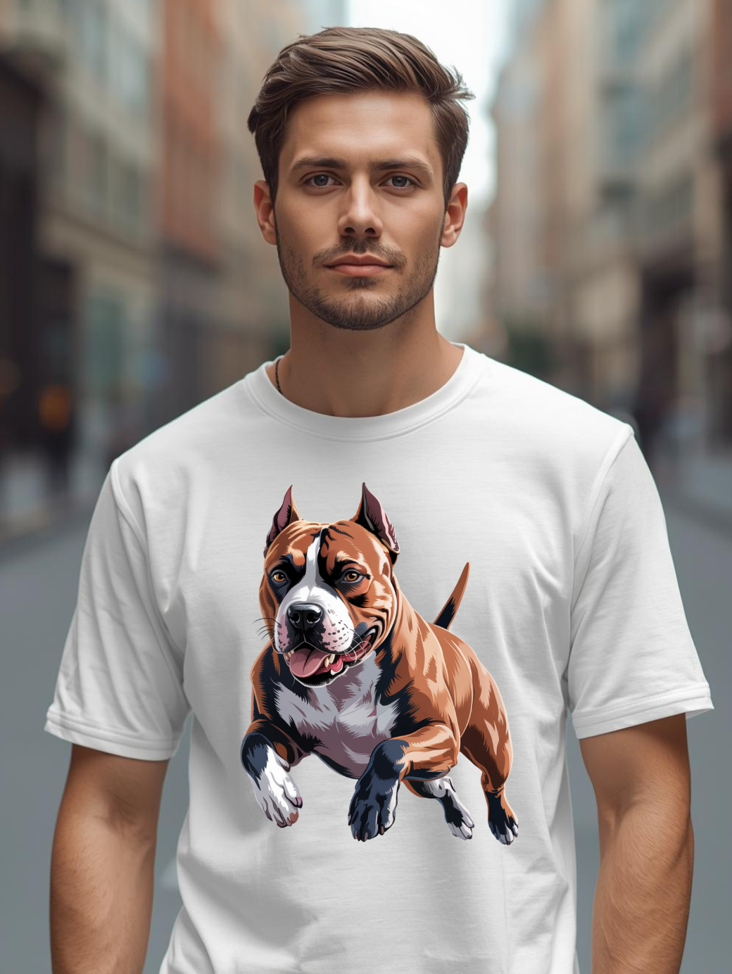 Ta koszulka to idealny wybór dla każdego, kto kocha energię, mądrość i oddanie Amstaffa. Klasyczny, czarno-biały nadruk w stylu graficznym doskonale oddaje temperament tej wyjątkowej rasy – pełnej pasji, ruchu i radości życia.