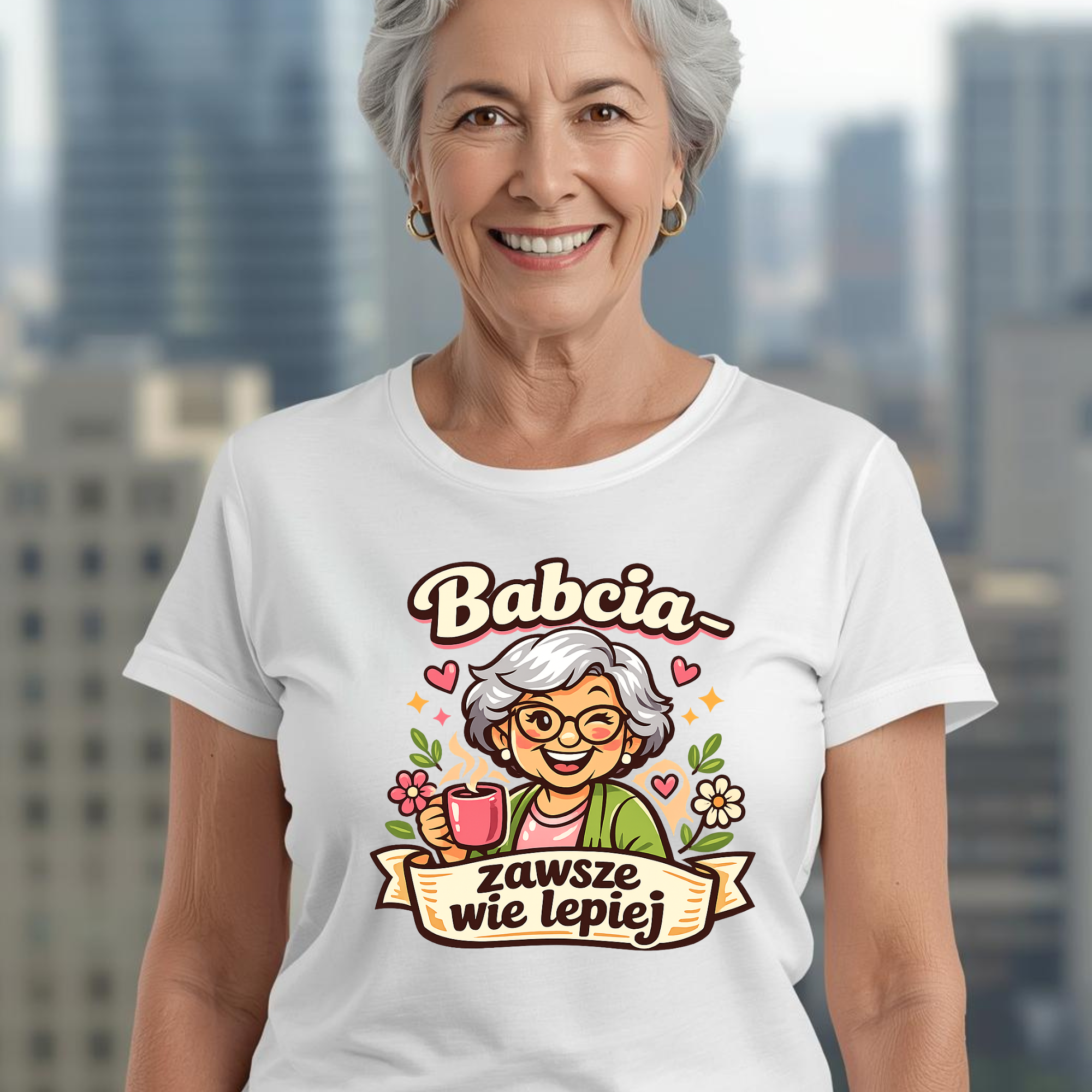 Ciepła, stylowa i pełna uroku – ta koszulka T-shirt dla Babci to wyjątkowy sposób, by podkreślić jej charakter i dobre serce. Subtelna, a zarazem wyrazista grafika nawiązuje do miłości, troski i mądrości, które Babcia wnosi do codzienności, nadając całości ponadczasowy i elegancki wygląd.