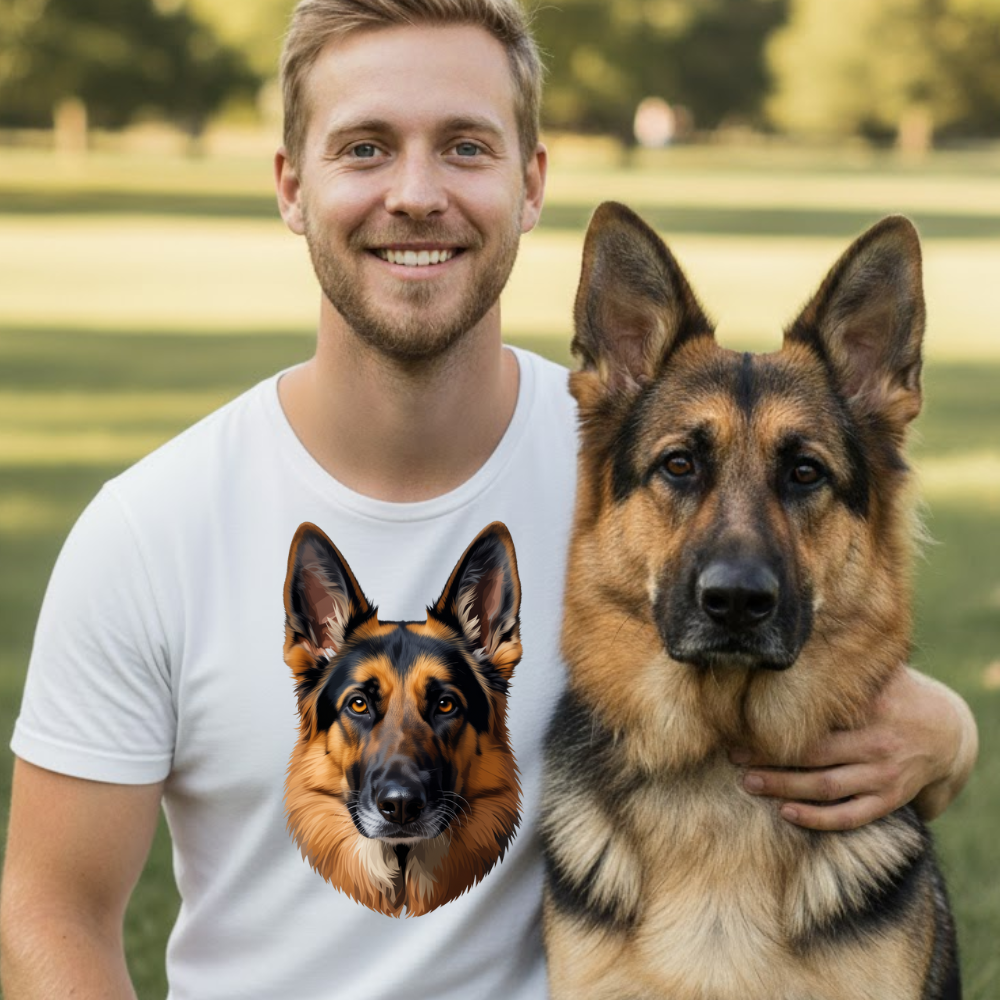 Pokaż swoją miłość do czworonogów w stylowy sposób! Nasza koszulka z wyjątkową grafiką owczarka niemieckiego to doskonały wybór dla każdego, kto ceni lojalność, siłę i charakter tego niezwykłego psa. Wysokiej jakości nadruk przedstawia realistyczny, a zarazem nowoczesny portret owczarka – pełen energii i wyrazu.