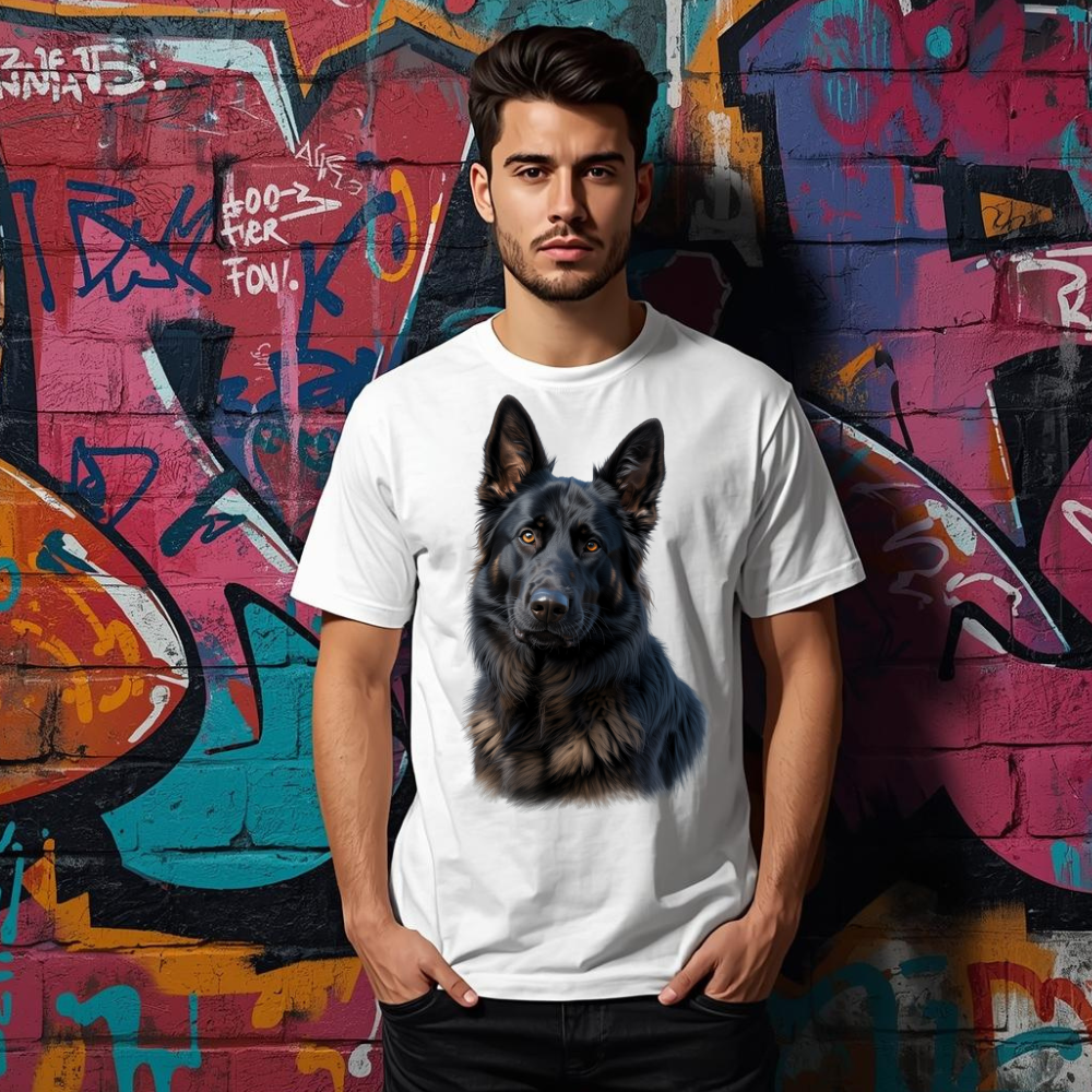 Pokaż swoją miłość do czworonogów w stylowy sposób! Nasza koszulka z wyjątkową grafiką owczarka niemieckiego to doskonały wybór dla każdego, kto ceni lojalność, siłę i charakter tego niezwykłego psa. Wysokiej jakości nadruk przedstawia realistyczny, a zarazem nowoczesny portret owczarka – pełen energii i wyrazu.