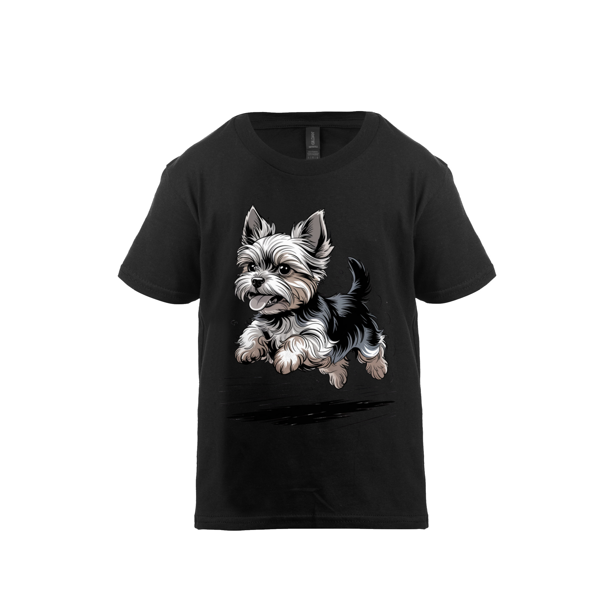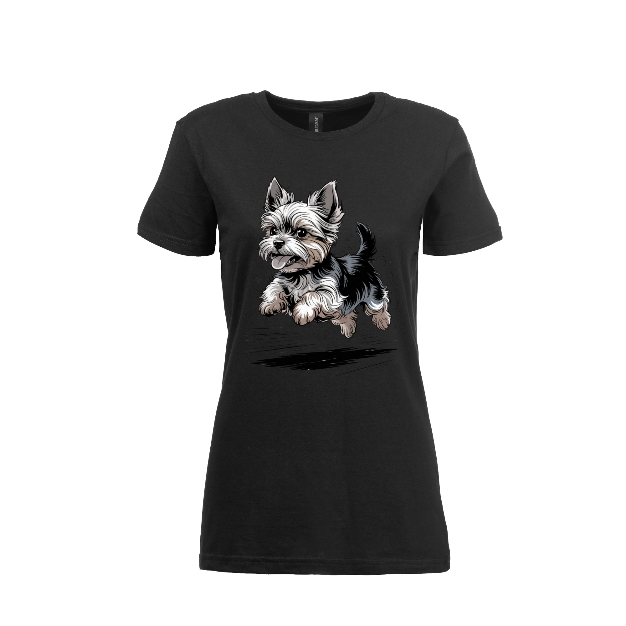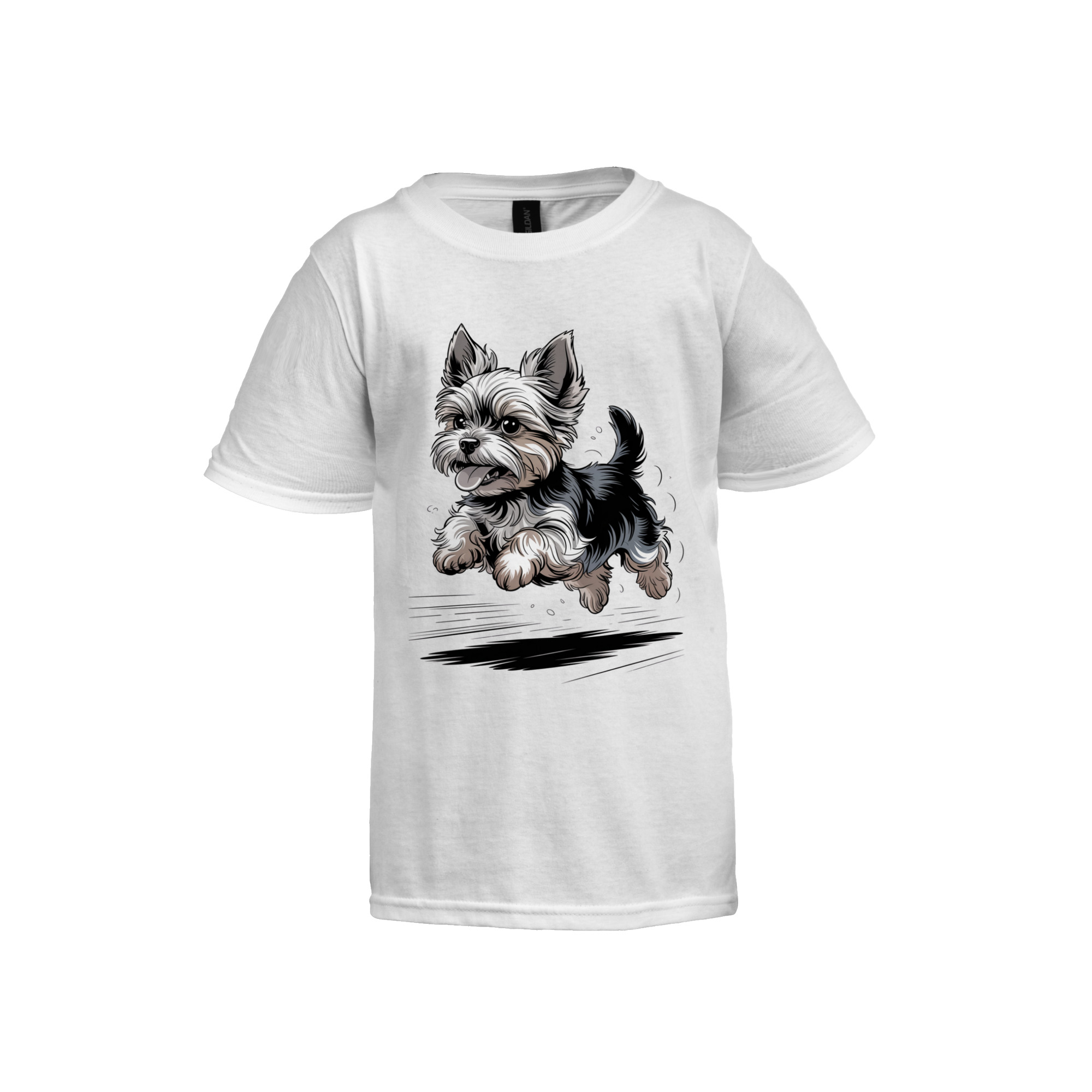 Stylowa i pełna energii – ta koszulka T-shirt w kolorze czarnym lub białym to propozycja dla osób, które cenią sobie dynamikę i pozytywne emocje. Wyrazista grafika biegnącego Yorka nadaje projektowi lekkości, radości i podkreśla miłość do psów oraz aktywnego stylu życia.