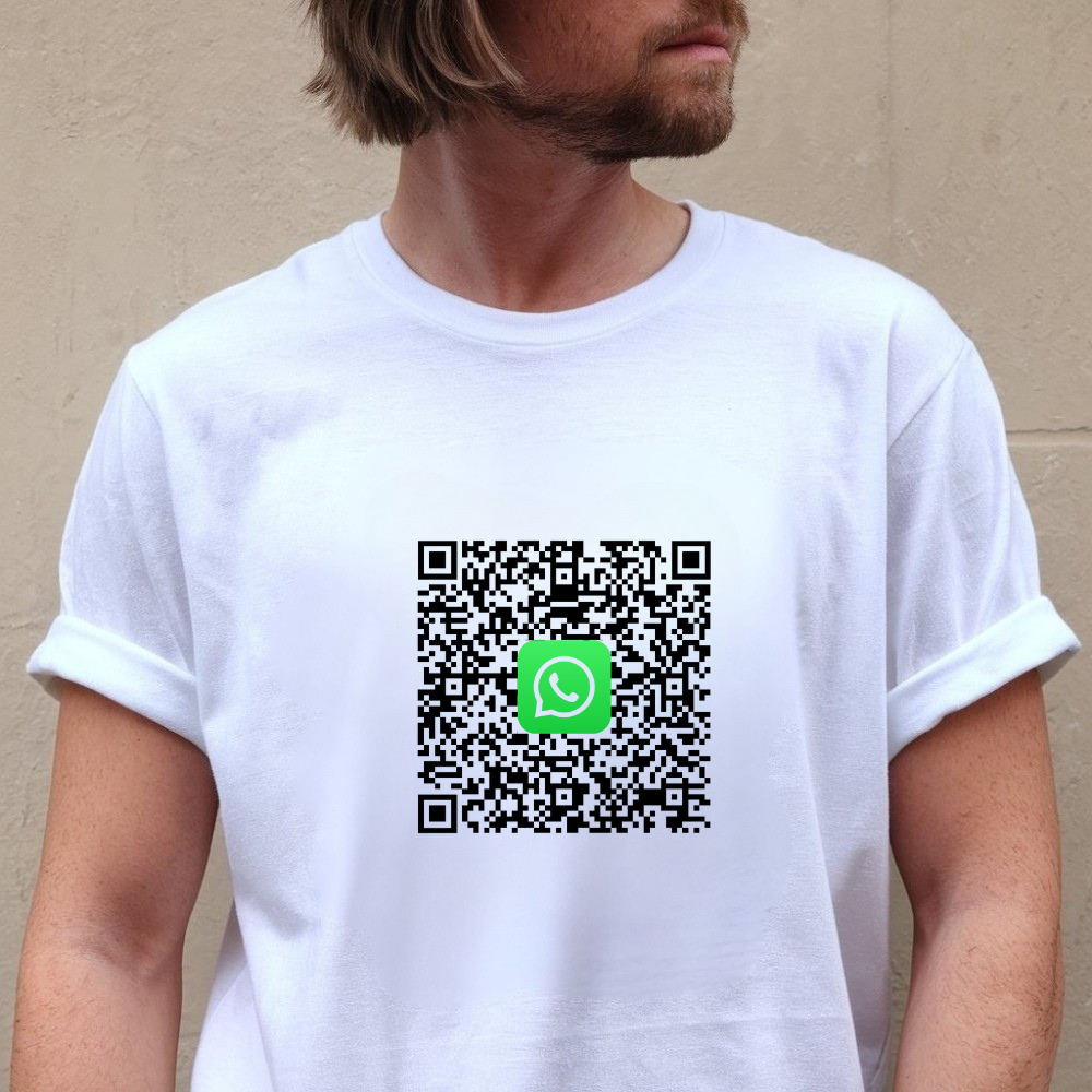 📲 Dodaj swój numer WhatsApp i daj się zeskanować! Dzięki tej koszulce już nigdy nie będziesz musiał podawać swojego numeru ręcznie – wystarczy, że ktoś zeskanuje kod QR na Twojej koszulce i od razu rozpocznie rozmowę z Tobą na WhatsApp