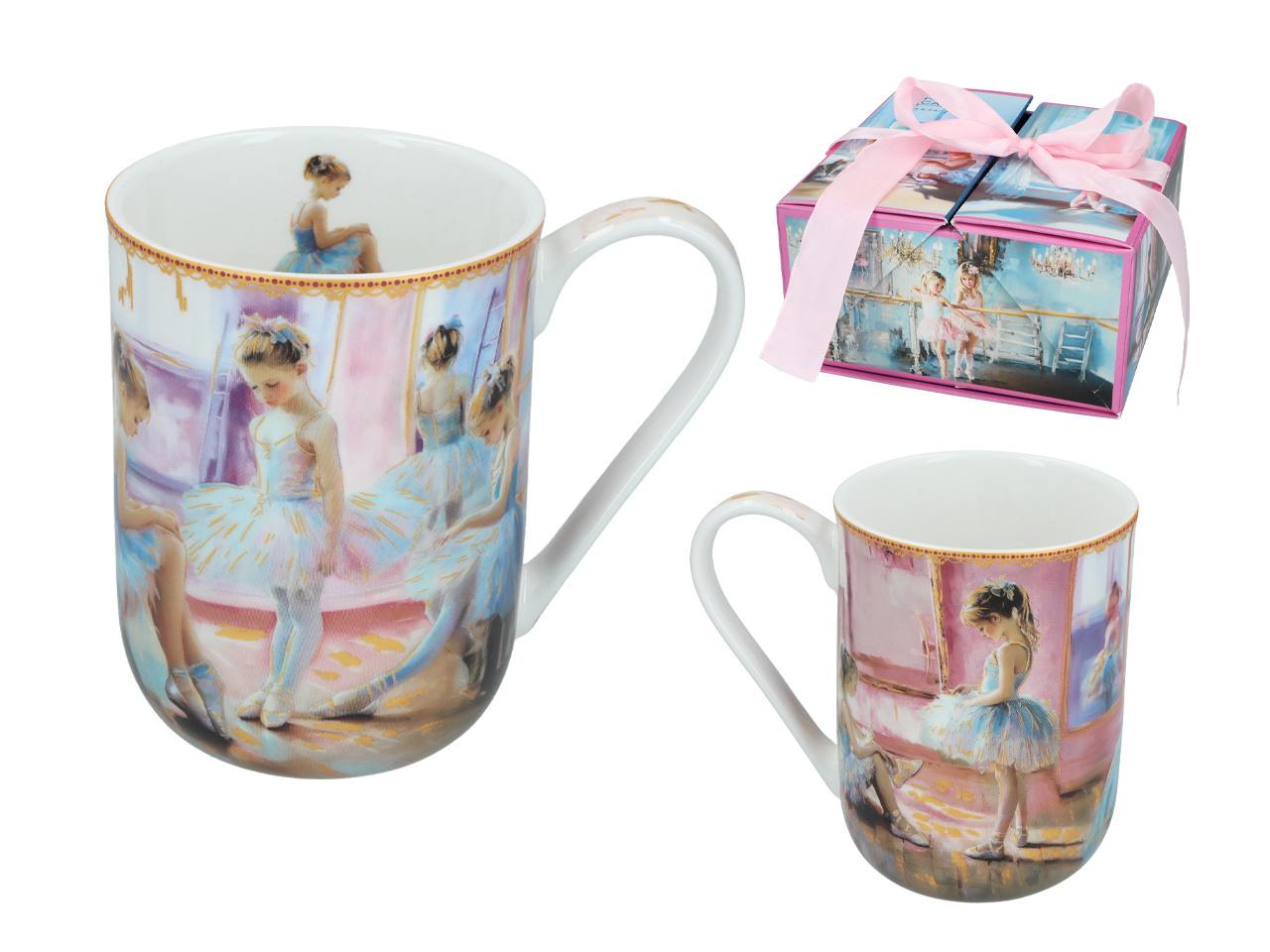 Małe baletnice uchwycone w czasie tańca, to uroczy obrazek. Tym razem umieszczony na kubku z porcelany wysokiej jakości. Kubek posiada dedykowane pudełko prezentowe także z wizerunkiem uroczych baletnic.