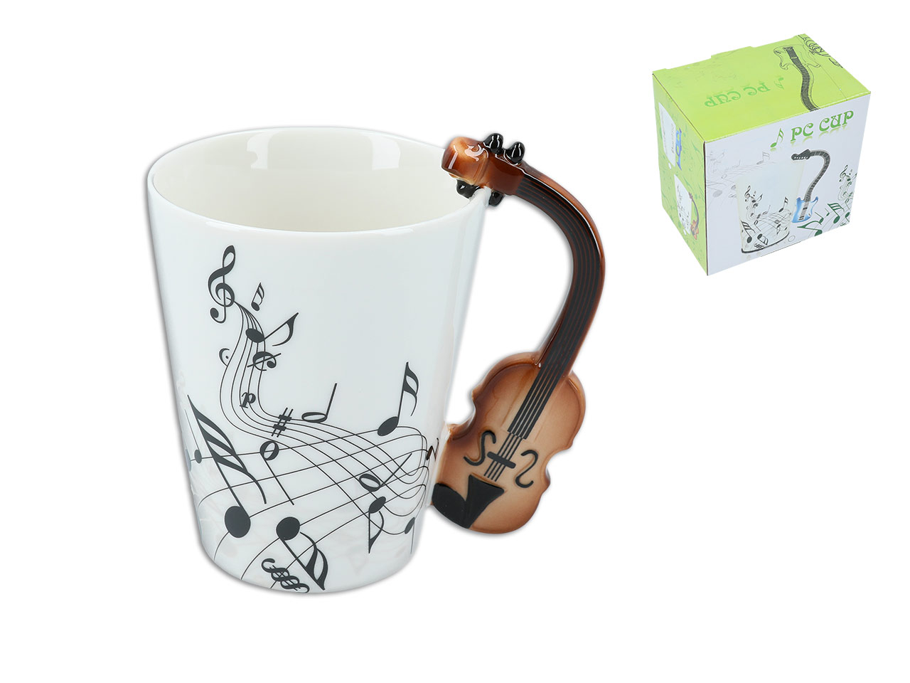 Kubeczek jest wykonany z białej porcelany, ozdobiony pięknym motywem muzycznym. Całość wykończona jest w delikatnym połysku, co sprawia, że kubeczek wygląda bardzo elegancko i atrakcyjnie.