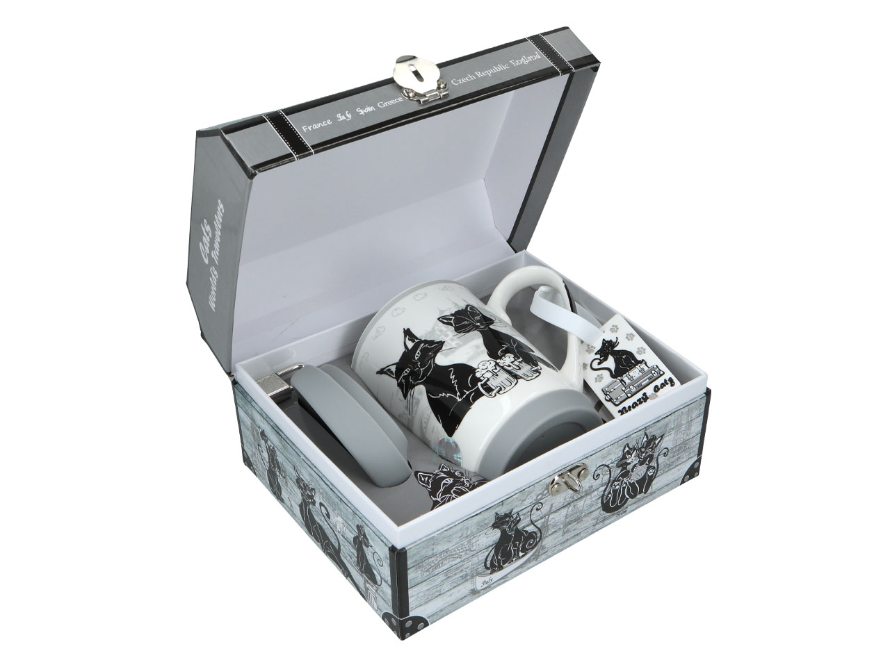 Kubek koci świat to niezwykła propozycja dla miłośników kotów. Kielich wykonany jest z wysokiej jakości ceramiki, ozdobiony uroczym wzorem kotków w różnych pozach. Antypoślizgowa podstawka zapewnia stabilność kubka na każdej powierzchni.