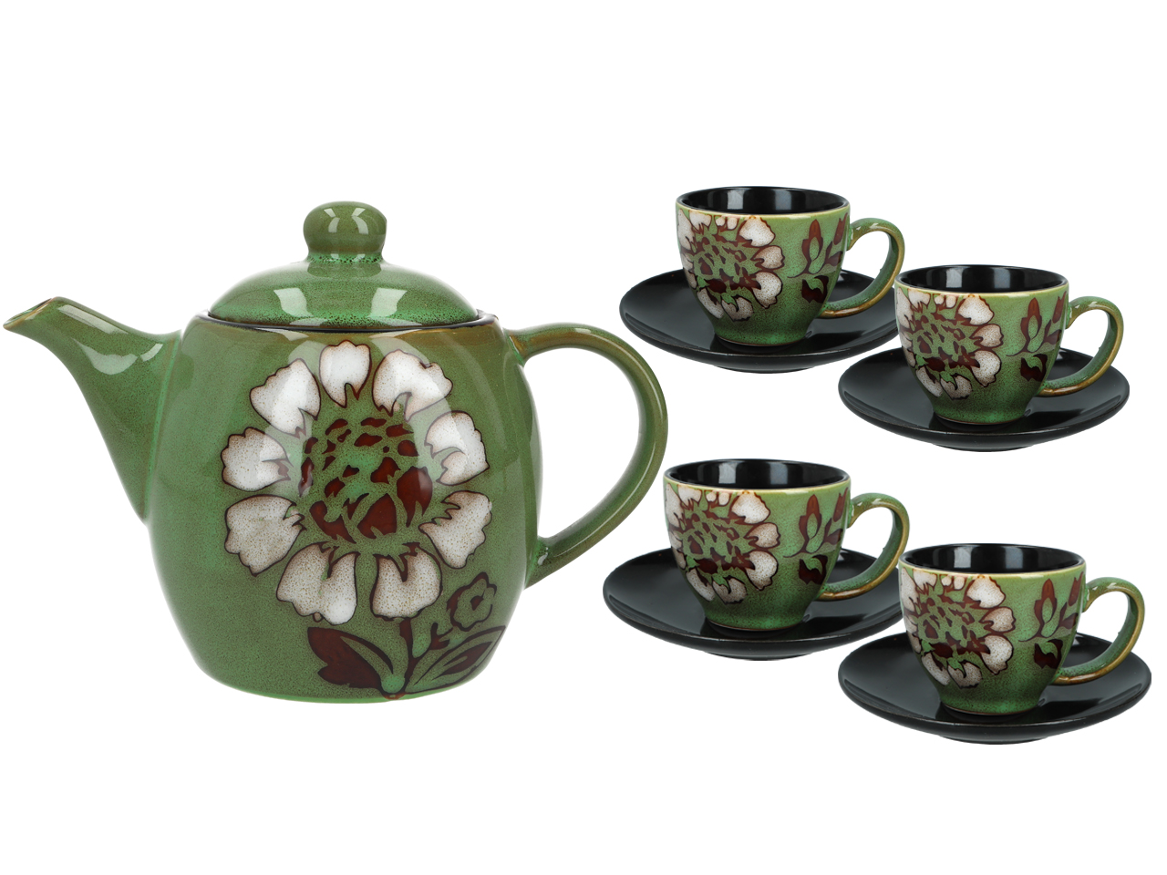 Serwis – czajnik i 4 filiżanki ze spodkami (kolor do wyboru)