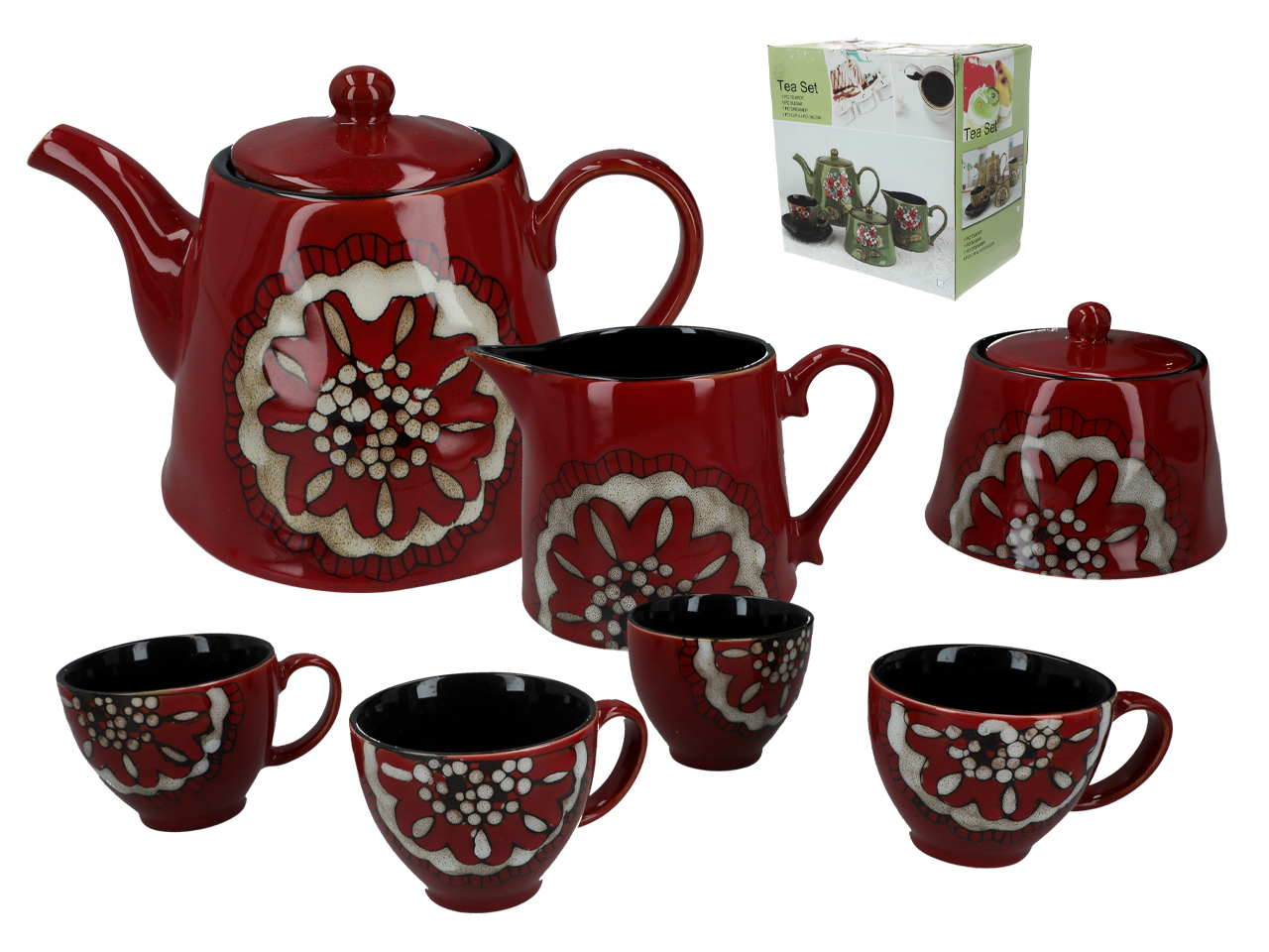 Serwis – czajnik i 4 filiżanki ze spodkami oraz mlecznik i cukiernica