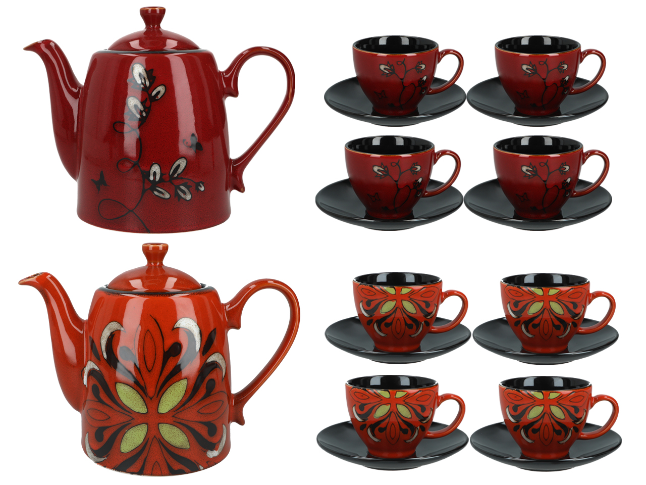 Serwis – czajnik i 4 filiżanki ze spodkami (wzór do wyboru)